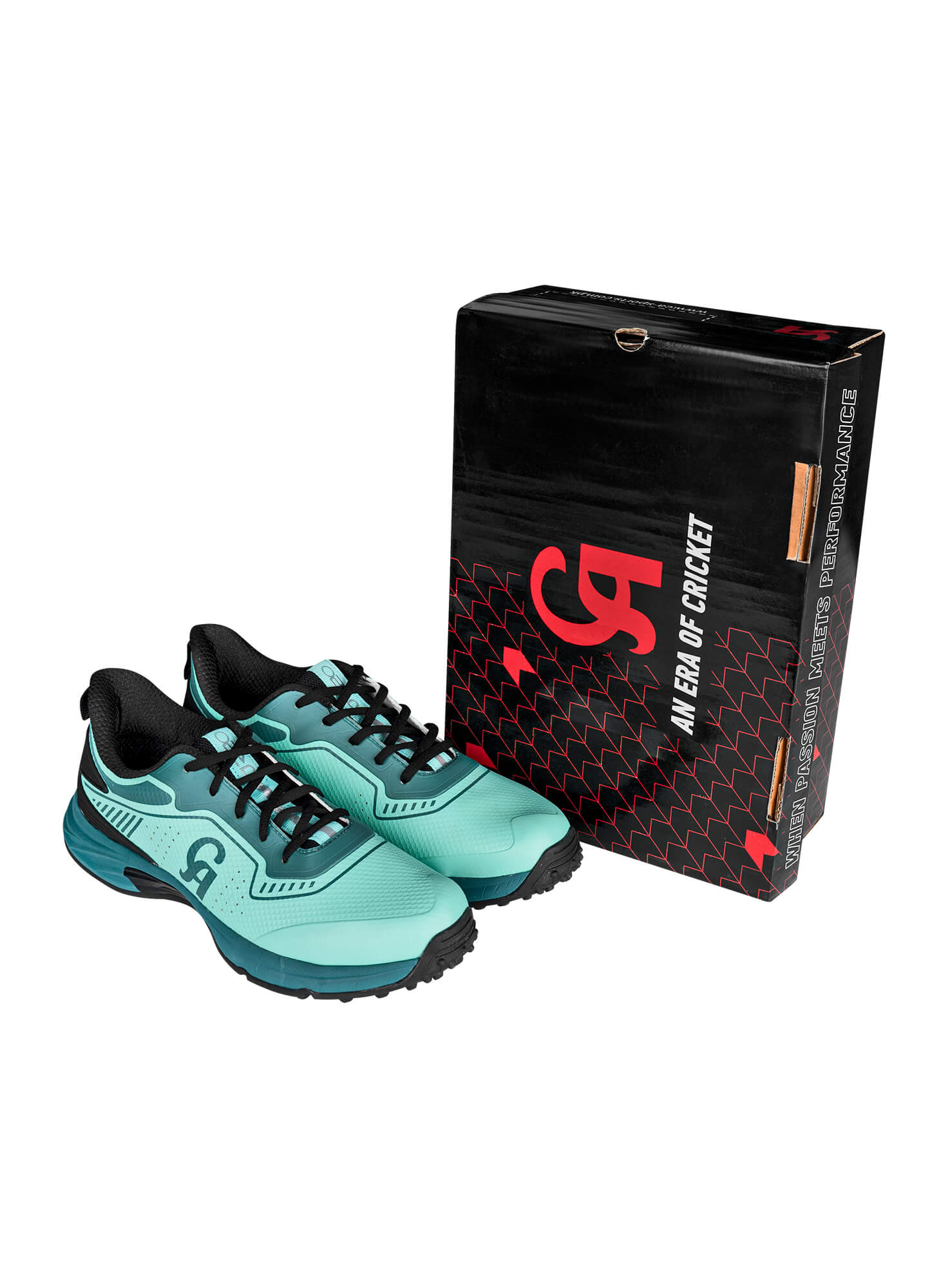 The JR-20 Cricket Shoes in see-green are comfortable, strong, and give you good support. They are made from synthetic leather for cricket players who need good grip and stability. These shoes help you stay comfortable during the whole game.