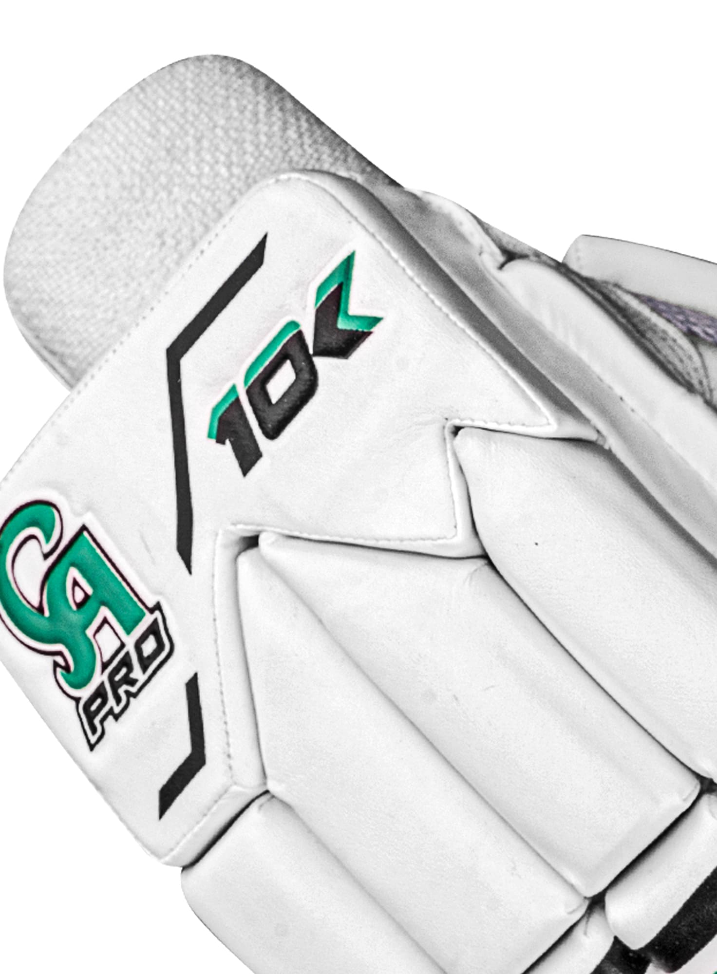 The CA Pro 10K Batting Gloves are built for players who demand top performance. These gloves offer excellent protection, firm grip, and long-lasting comfort. They help you play with confidence against fast and spin bowling. The soft leather palm improves bat control and reduces vibration. Thick finger padding absorbs impact and protects your hands. The breathable design keeps your hands cool during long innings. These gloves are perfect for competitive and professional cricket.