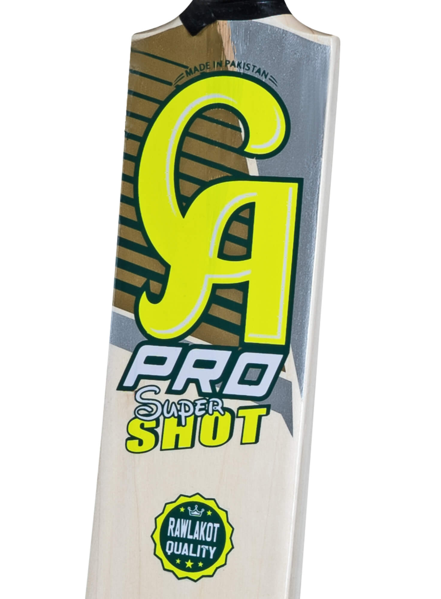 Introducing the CA Sports Pro Super Shot Softball Cricket Bat, crafted from high-quality Poplar willow. This bat boasts a clean, sleek look adorned with vibrant stickers on the face and complete coverage on the back. Available in two striking colors, it’s designed for players aiming to hit long strokes and boundaries effortlessly. Whether you're playing a casual game or competing at a higher level, the Pro Super Shot ensures exceptional performance and style. Elevate your game with this premium cricket bat from CA Sports.