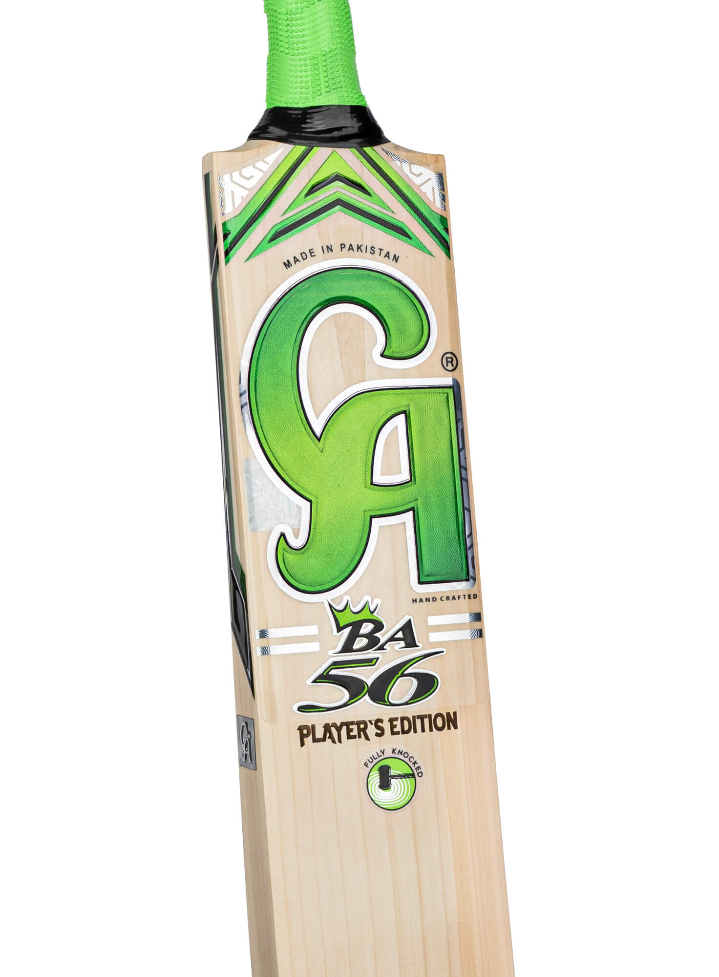 The BA 56 Player Edition English Willow Bat for Babar Azam brings a blend of power and precision to cricket fans. The bat, made of Grade 1 English willow with 8 grains, is great for aggressive play. With its balanced weight, the swings feel effortless. It also boasts reverse lock technology to provide more strength. The grooved green grip offers a secure and comfortable hold, making it an ideal choice for serious players. Featuring Toe Glass Protek Technology, it is built to last. It comes with a designer carry bag for convenience.