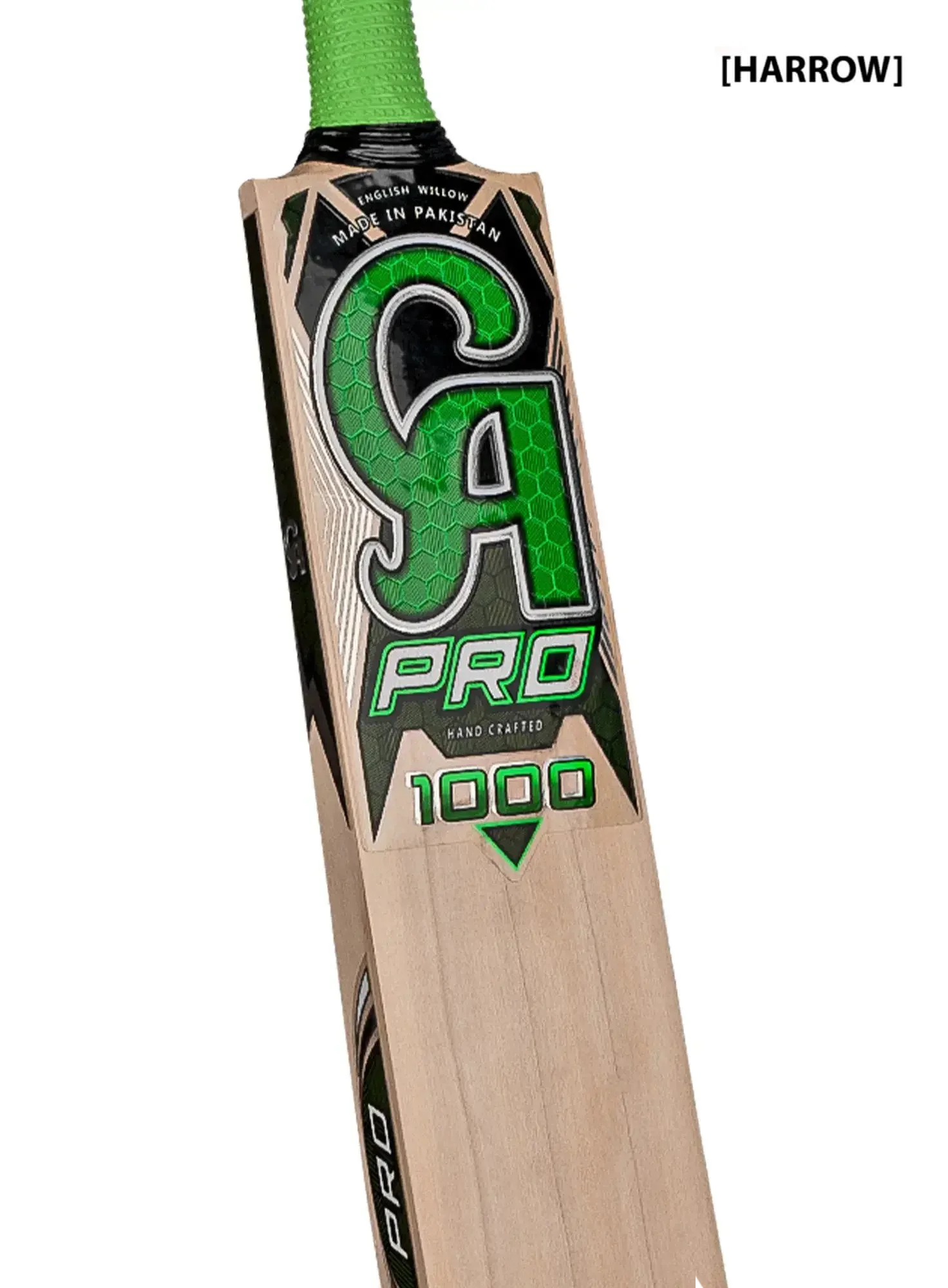 batting skills. It lies in the mid-range of CA English willow bats. It is a six-plus straight grain bat which is a go-to product for the emerging cricketers. After its manufacturing approval by CA pro, it is being crafted by dedicated craftsmen and it is a fine response to the existing competitors it has in the industry. Talking about its structure which comprises a well-crafted sweet spot. The presence of 2020 edition styled stickers make this product more attractive yet part of the family. Pro 1000 is being considered and chosen by many emerging batsmen like Bismillah Khan and Waqas Maqsood. Haris Sohail has also used this bat in international matches. Just like Pro 20K, dragon 7 stars, pro 15000 PE, pro 15000 and other bats of the CA pro, pro 12000 bats also comes with its matching gloves and pads. Therefore, making this bat your choice wouldn't be confined to buying a mere bat but a proper designer bag and protection gears.